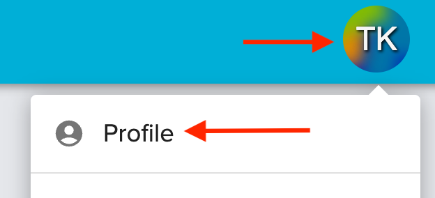 - Navigate to the Customer Billing Portal, click on your initials in the top right, then choose Profile.